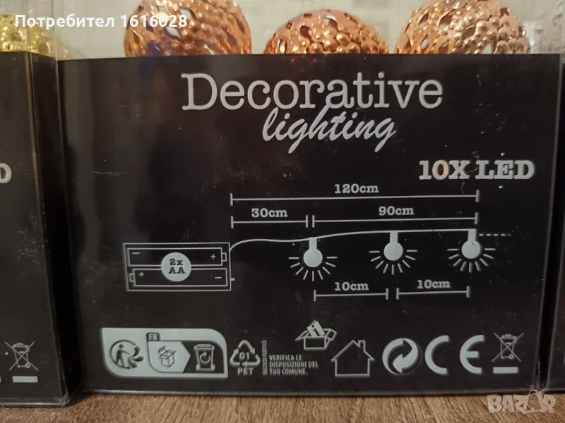 Нови LED гирлянди с красиви метални топки. → Обява 48183148