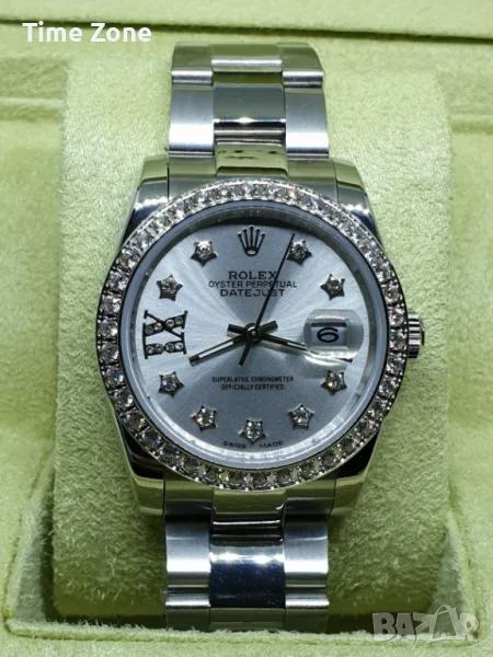 - Стъкло: Недраскаем сапфир-кристал с двоен антирефлекс и лупа за датата. Гравирана с лазер миниатюрна коронка на 6 часа