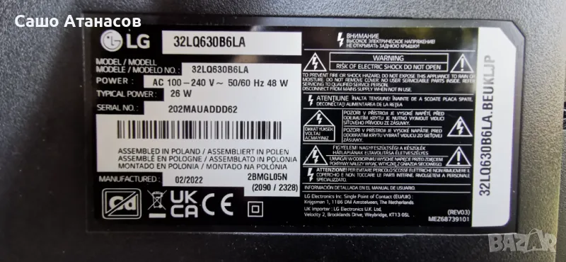 LG 32LQ630B6LA със счупена матрица ,EAX69091402(1.0) ,EAX69822903(1.0) ,LGSBWAC03 ,SDL320H0(HD0-B10)