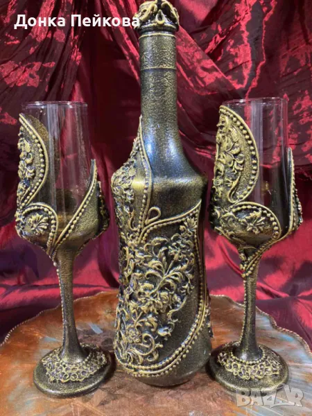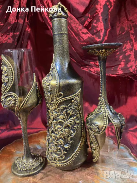 Сервиз за вино от 3 части в злато, ръчна изработка → Обява 48183888