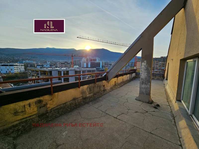 ПЕНТХАУС С ХУБАВА ГЛЕДКА! Надилена риъл естейтс продава просторен апартамент тип мезонет с РЗП 492м2(застроена площ от 408м2), ет. 6 и 7, няма асансьор, отопление-предвидено на газ. Сградата се намира в близост до ул. Георги Русев, наблизо са магазини Фантастико, Кауфланд, заведения, спирка на градски транспорт, получила е Разрешение за ползване през 2009год., с контролиран достъп. Разпределението е следното: 1-во ниво- голямо антре, огромна дневна с трапезария, кухня, двойна спалня, спалня, баня с тоалетна. От хола се излиза на южна тераса с прекрасен изглед към Витоша. 2-ро ниво-втори хол, спалня, баня с тоалетна, килер. Има възможност да се раздели на две жилища, както и при необходимост да се преразпределя площта на апартамента, спрямо изискванията на купувачите. В съседна сграда може да се закупи паркомясто. За допълнителна информация и огледи се обръщайте към Надя Антова-088/9999 413, 0888/788 420