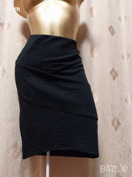 Черна еластична, бандажна пола в талията с ластик, от 37 до 47 см едностранно, ханш 47 до 57 см едностранно, Отпред е раздвижена дължина от 47 до 57 см Няма забележки