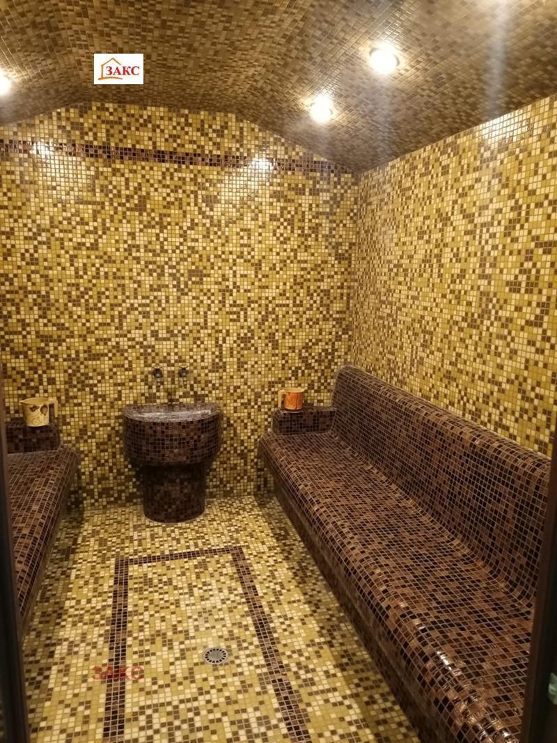 На втори етаж-парна баня,сауна с парна кабина, солариум,игрална зала за билярд,съблекални- дамска и мъжка и мъжка и дамска тоалетни и панорамен апартамент. възможност за покупка на друга сграда в съседство-с цел хотелска част и проект за ресторант, лоби бар, хотелски стаи , рецепция.