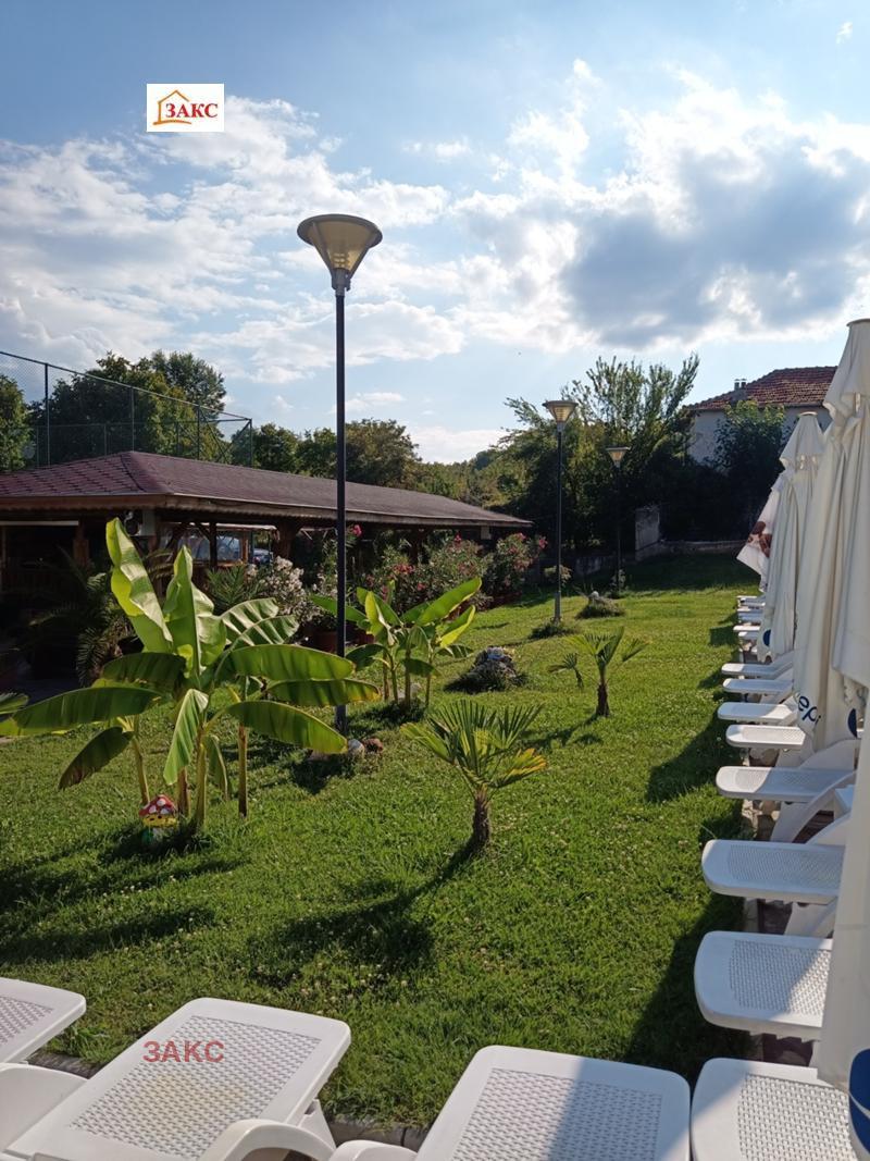 ДВОРНОТО МЯСТО е с изграден басейн,тенис корт,игрище за бадминтон,волейбол, летен бар със заведение 200 кв.м, тревни площи- декоративни дръвчета, храсти и цветя. Паркинг. Басейнът е с размери дължина 19 м на 12 м- дълбочина от 120 см на 170 см с отделено детско на дълбочина 60 см с размери 4 м на 4 м.