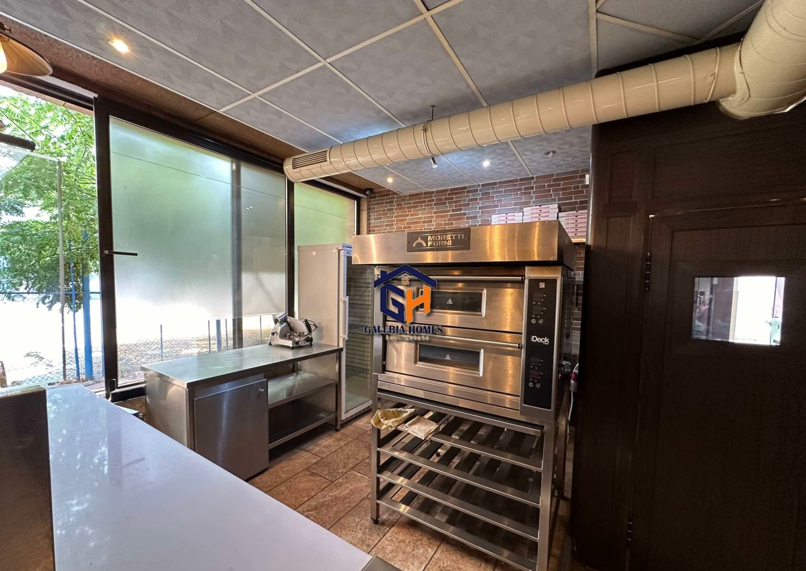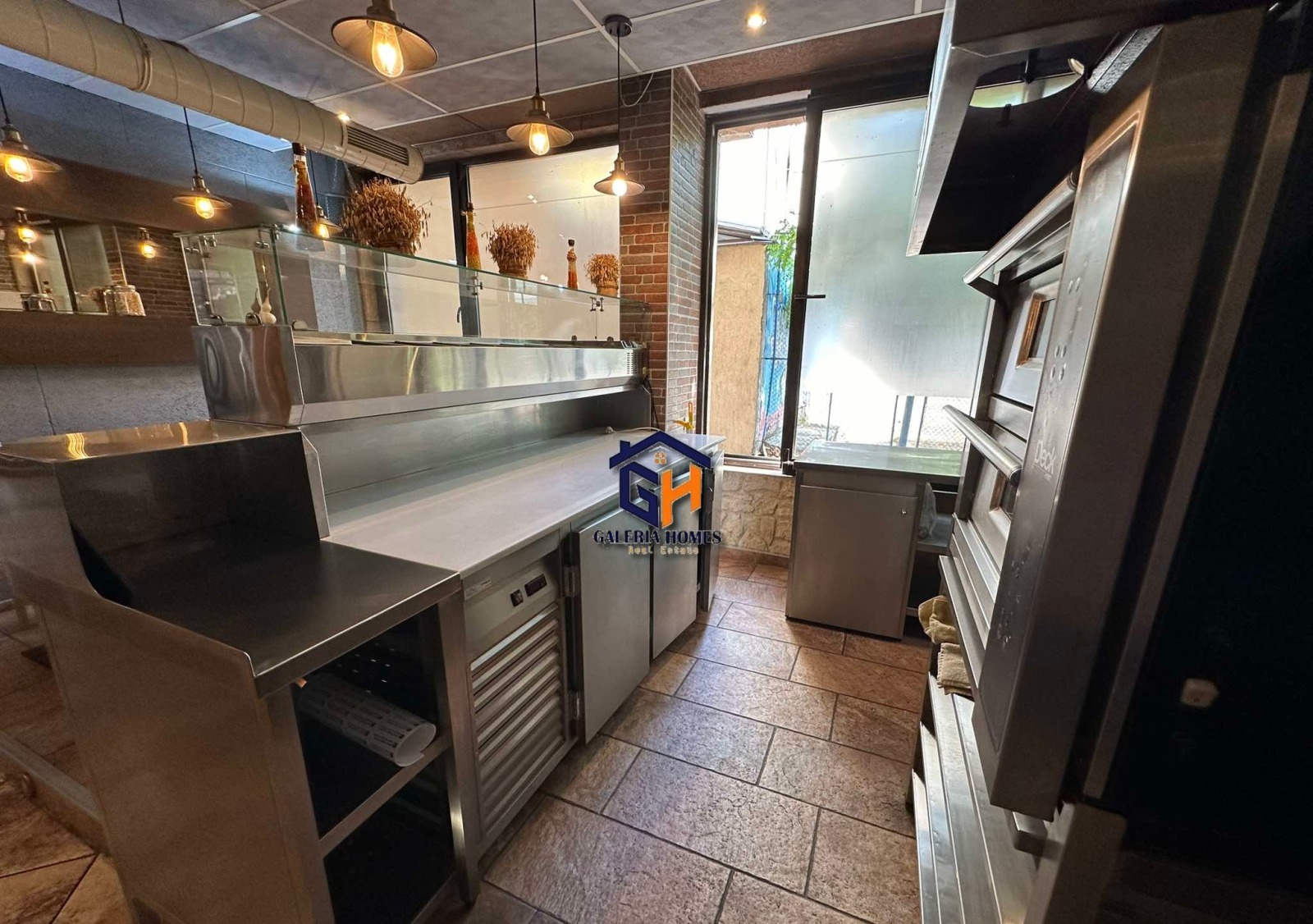 Продава се с цялото оборудване и обзавеждане: три телевизора, климатици (колони), вентилация, Бен мари (студено) за заготовки за пици, под него хладилни шкафове, две колбасорезачки. Професионална пекарна за пици Moretti forni, фокачи и друг вид тестени изделия от висок клас. Барът разполага с ледогенератор, кафемашина, инсталация за жива бира, склад към бара за алкохол и безалкохолни напитки. Кухнята разполага с миялно помещение с миялна машина, душ за изплакване на съдове, аспирация, конвектомат, котлони на газ- 4бр., 3 хладилника, 2 фризера, фритюрници.