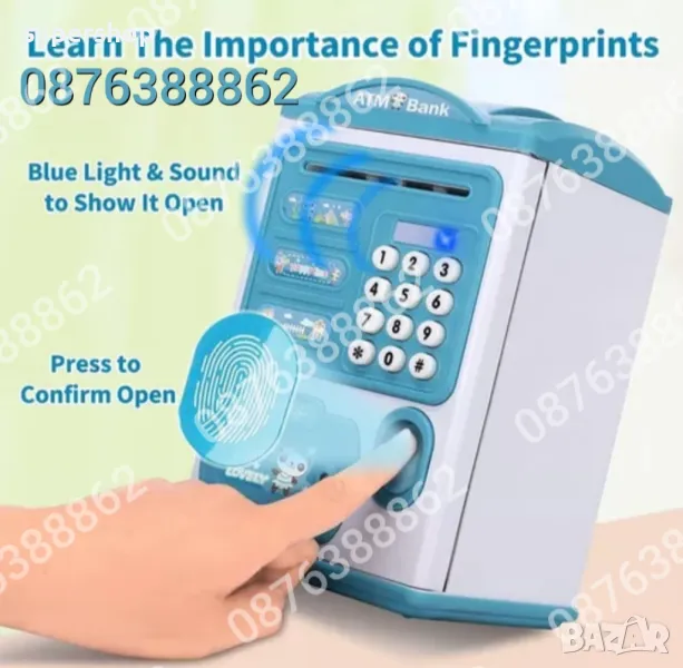 Промоция!Детска Касичка Сейф за Банкноти и Монети с Парола и Пръстов Отпечатък