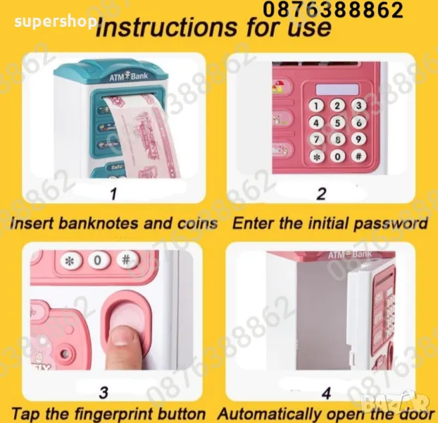 Когато вашите деца имат банкомат касичка, те ще започнат да спестяват пари, за да изпълнят малките си мечти. Касичките са страхотни като подаръци за деца за рожден ден, Ден на детето, Коледа, Нова година и други празници. Не само, че е касичка, тя е и забавна детска играчка.