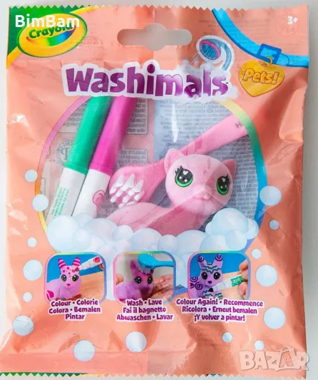 В пакетите с миещи се фигурки Crayola Washimals сладко животинче чака децата, за да добави нов цвят към одеялото си. Независимо дали е Тони, Ръсел, Джейк, Хилди, Корал или Фатима, вие със сигурност ще харесате новата си визия. Този пакет съдържа Фатима, седящата котка.