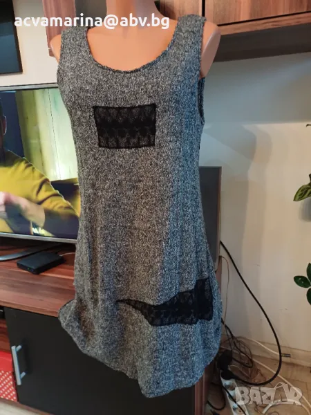 Стилен топъл сукман , с платки от черна дантела .Материята е 70% полиестер и 30% вълна . Отлично състояние ,, без слди от носене . За снимката съм комбинирала с бяла еластична блуза с платка и ръкави от гас.