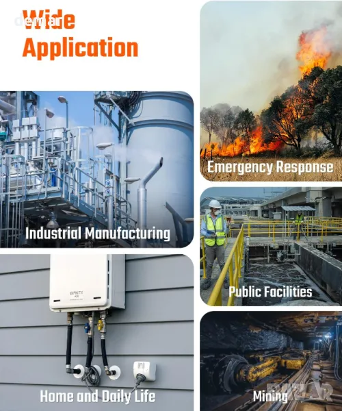 Газовият монитор Guard-156 4 предлага бързо откриване на H2S, CO, LEL и O2 с време за реакция от 20 секунди и непрекъснати аларми до възстановяване на безопасните нива. Той разполага с 4-часово бързо зареждане за 15-часов живот на батерията, индикатор за батерията в реално време и сигнали за изтощена батерия под 10%. Проектиран с тройни аларми (LED, вибрация, звук), той е компактен, преносим, водоустойчив, прахоустойчив и взривозащитен, изработен от издръжлива инженерна ABS пластмаса. Професионално сертифициран за безопасност и надеждност, той е подходящ за индустриална, минна, селскостопанска, спасителна и домашна среда. Пакетът включва детектора, кабел за зареждане, ръководство, газов капак и кутия.