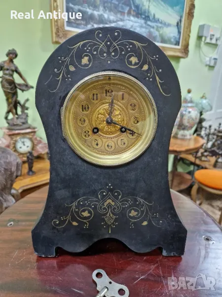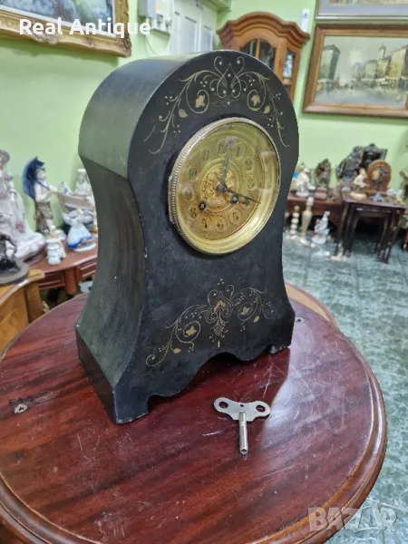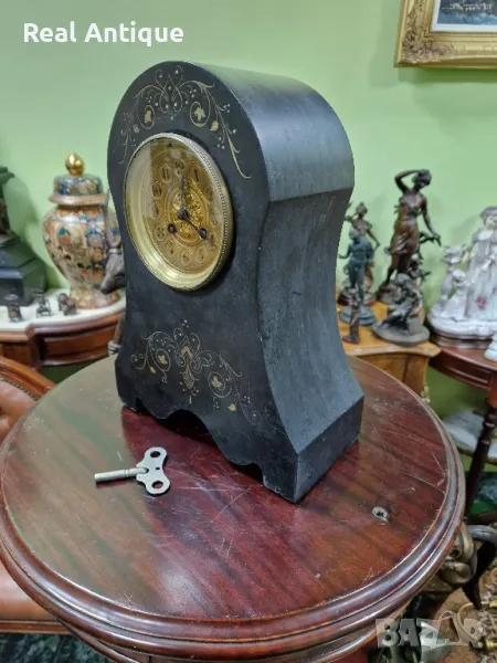 Продавам прекрасен антикварен колекционерски френски каминен часовник от черен мрамор в много добро състояние с оригиналното си махало и ключе. Работещ. Размери височина 37 см дължина 27 см ширина 12 см. Чудесно допълнение към интериора на Вашия дом офис вила ресторант хотел. Подходящ и за подарък. Работя с всички куриери. Отговарям бързо.