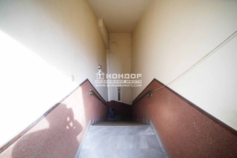 Оферта 65906: Предлагаме ви търговско помещение със статут на кафе-аперитив до МОЛ Пловдив и Пълмед. Помещението е с вход от партера и е разположено изцяло на сутеренно ниво с РЕАЛНА КВАДРАТУРА 85 КВ.М и прилежащо избено помещение- 4 кв.м като представлява едно помещение, кухня и санитарен възел. Разполага с трифазен ток, професионална климатична система, прозорци към вътрешния двор, WC в завършен вид-под теракота, стени латекс.