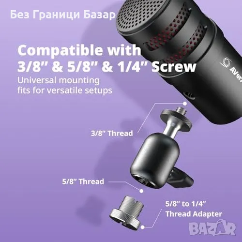 Стабилна стойка: Регулируема стойка с гумени крачета за стабилност при употреба като студиен или подкаст микрофон.