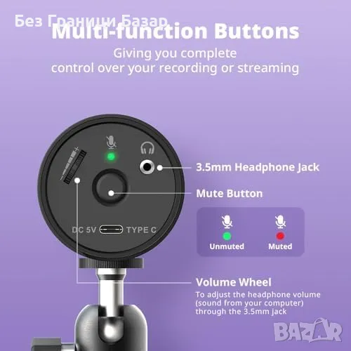 Нов Професионален гейминг микрофон с AI шумова редукция и USB-C връзка