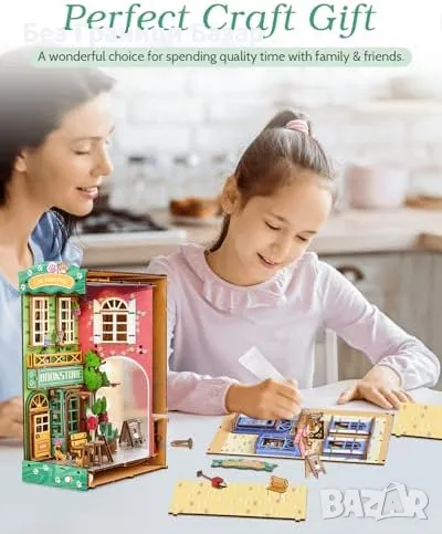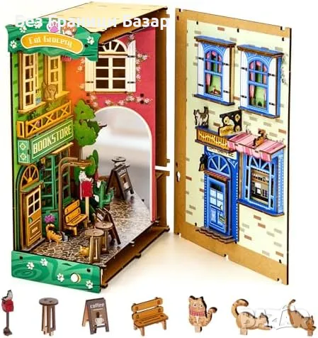 Нов Миниатюрна улична сцена – Дървен пъзел и декор за книги украса дом