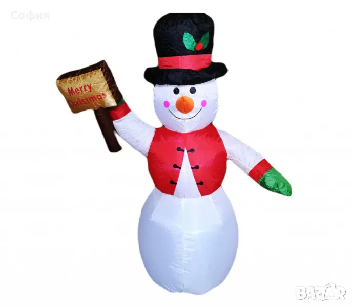 Този висок анимиран надуваем снежен човек, носещ ръкавици и шапка, е забавен и креативен начин да украсите двора си по време на празничния сезон.;