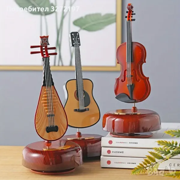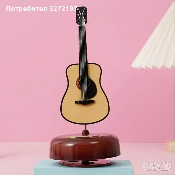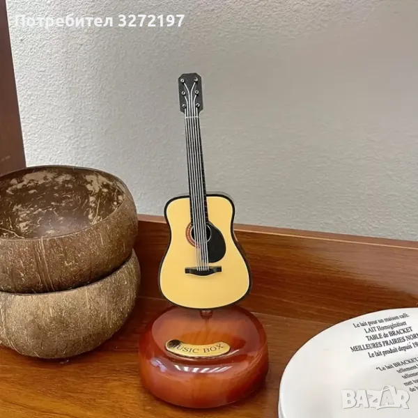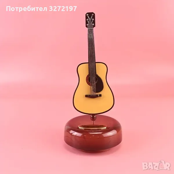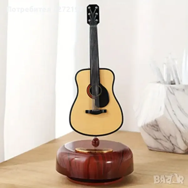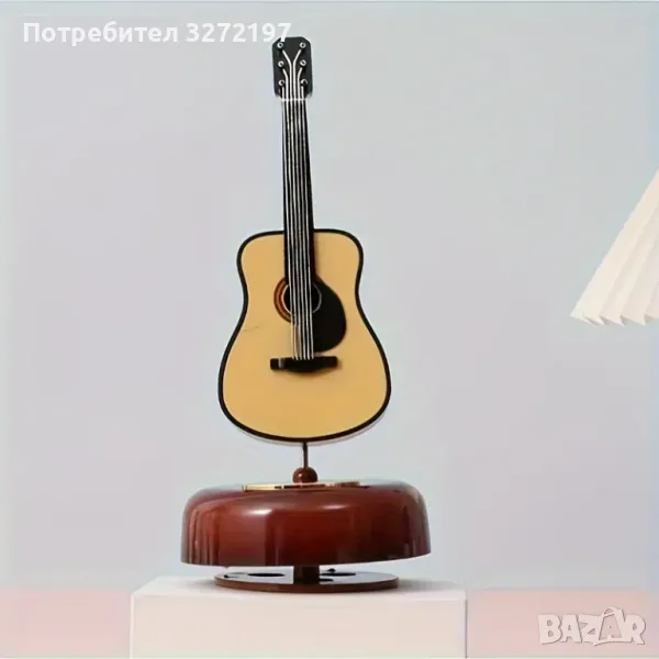 Ръчно изработена въртяща се музикална кутия с форма на китара в ретро стил, механична → Обява 48197380