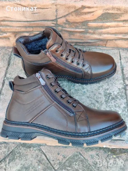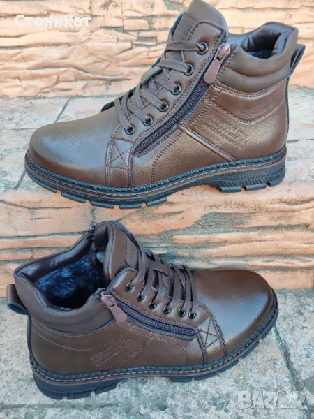 Мъжки боти ,,Gabin" изработени изцяло от ВИСОКО КАЧЕСТВО еко КОЖА с ТЕРМОКАУЧУКОВО изолиращо ХОДИЛО с ГРАЙФЕР за повече стабилност и сигурност при ходене,не се пързалят при хлъзгави и заледени терени.Лесно за обуване с два ЦИПА отстрани и връзки за корекция според ширината на крака.С топла вата отвътре.Номерата40-45 отговарят Български стандарт.Цена-65лв.