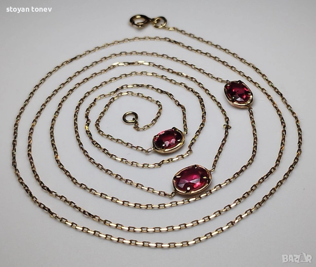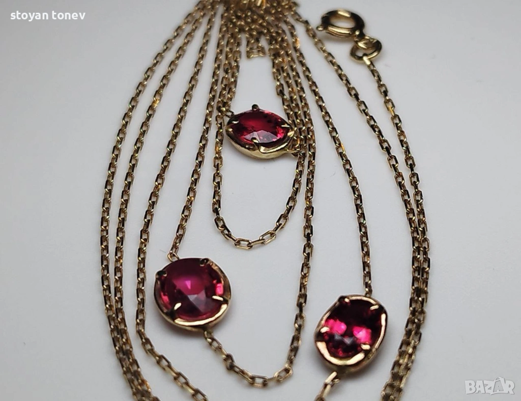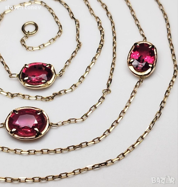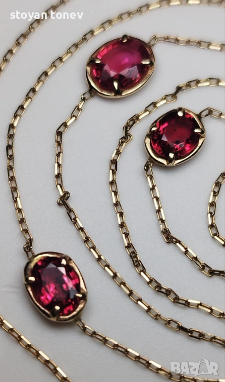 Представям ви едно истинско произведение на изкуството, създадено от мен лично – многофункционално колие/гривна от 14-каратово злато, с 3 натурални ярко червени рубина! Ключови качества на рубините: - Тегло: Общо 2.06 карата (сертифицирани от Chanthaburi Gemological Laboratory – GLC)