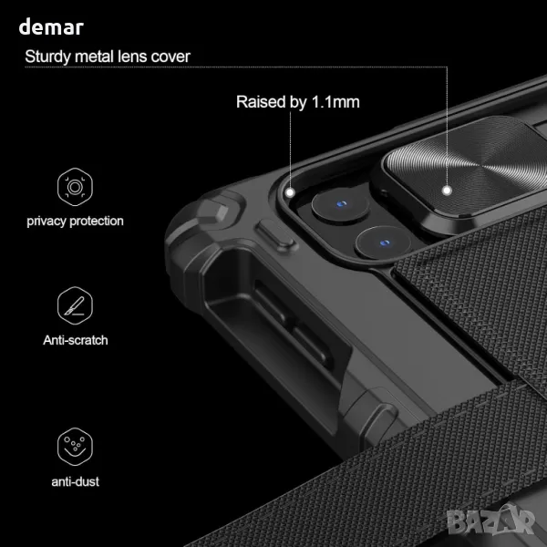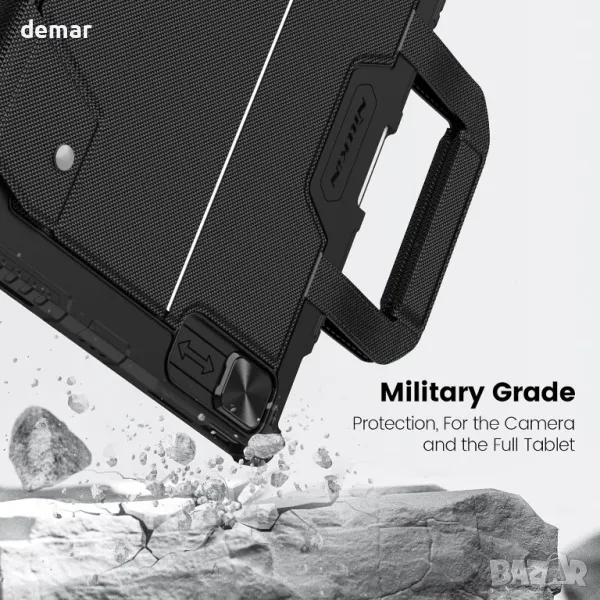 iPad Pro 13-inch (M4) 2024, този здрав калъф с клавиатура съчетава функционалност с преносимост. Той разполага с издръжлива дръжка от PU кожа със силен магнитен дизайн за сигурно носене, клавиатура с подсветка за удобно писане, клавиши за бърз достъп и вграден тракпад. Свалящата се клавиатура позволява гъвкавост, а регулируемата стойка осигурява множество ъгли за писане, гледане или рисуване. Лесното Bluetooth свързване осигурява безпроблемна работа с дълго време в режим на готовност до 90 дни при пълно зареждане. Здравият калъф включва защита на камерата, държач за писалка за сигурно зареждане на Apple Pencil и военна защита за допълнителна издръжливост.