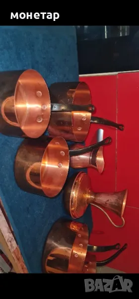 Комплект от 5 тенджери от Мед една медена чаша и ваза по желание можем да калайдисаме тенджерите но за бр. + 5 лв