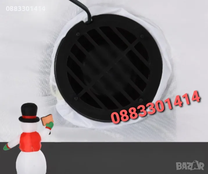 Целият снежен човек се самонадува за минути, когато е включен във всеки стандартен електрически контакт и се издухва бързо в компактен модул за съхранение до следващия празничен сезон.