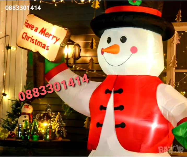 Този висок анимиран надуваем снежен човек, носещ ръкавици и шапка, е забавен и креативен начин да украсите двора си по време на празничния сезон.