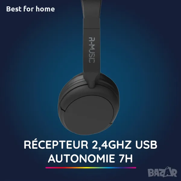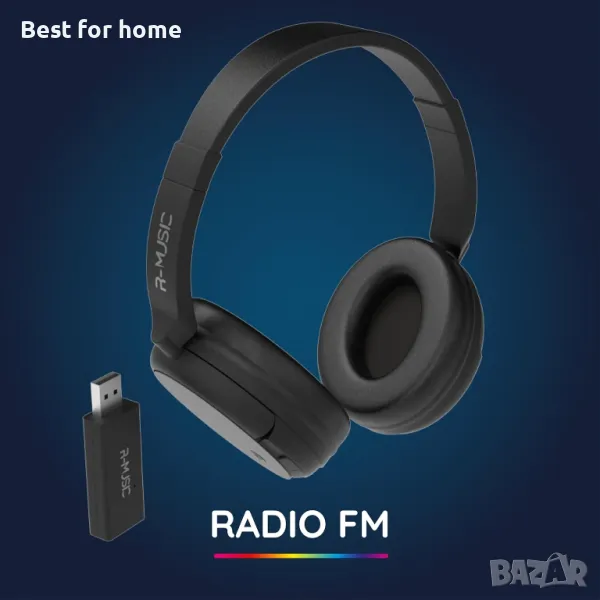 R-Music - RM311012 - Безжични слушалки за телевизор с USB приемник - 7H автономия - черни