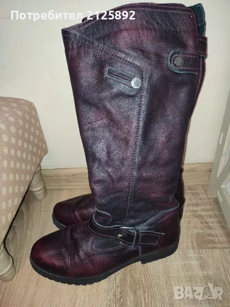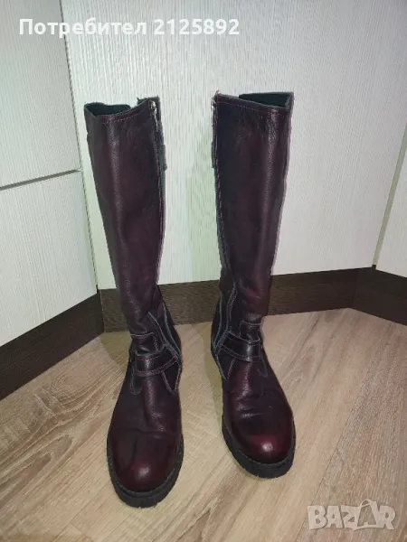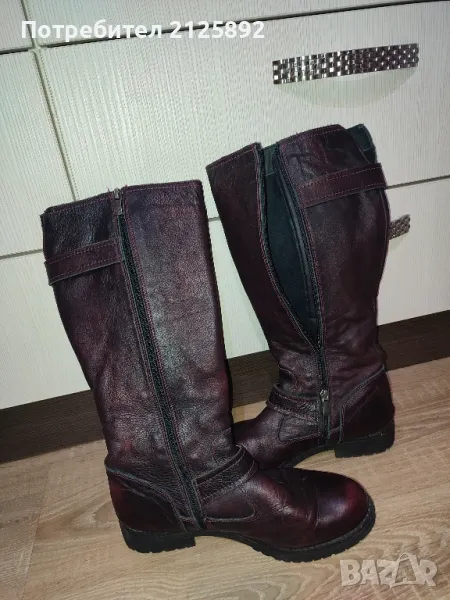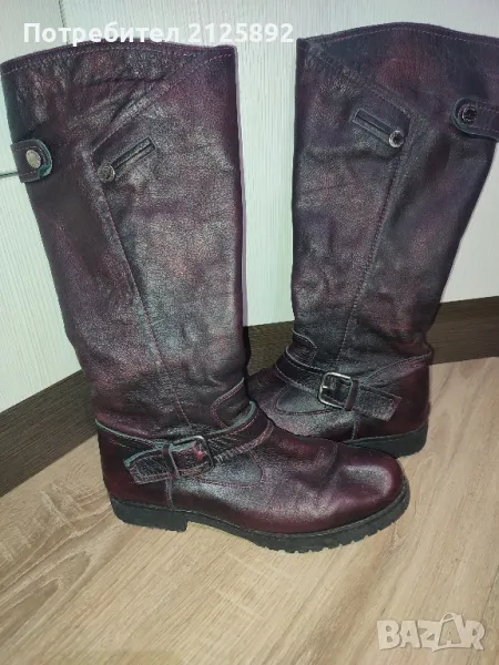 Дамски ботуши от естествена кожа,размер 38,като нови,без забележки,цвят преливащо тъмно бордо-нова цена 30лв.