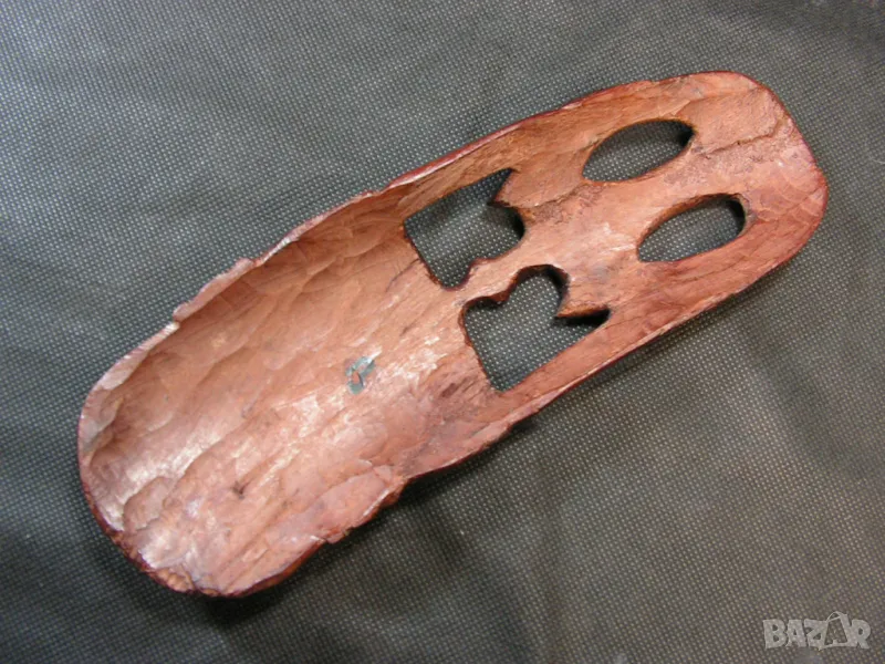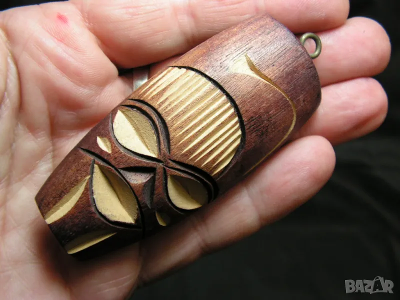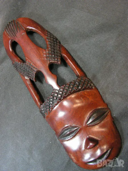 Преди година пътувах до Република Южна Африка служебно. Домакините ме записаха за организирано посещение в Националния парк Крюгер – Йоханесбург. На огромния паркинг за коли и автобуси,на един от входовете се сдобих с маската и гривната буквално от ръцете на майстора, който си беше спретнал работилница буквално на голата земя и с учудваща бързина и сръчност демонстрише уменията си . Цялото семейство от 8 до 80 години му помагаха самоотвержено. С входния билет ми подариха малката дърворезба, която е подарък за този, който ще купи маската и гривната. Така и не намерих място за дърворезбата на стената у дома . Имам официално предупреждение от съпругата, че ако донеса още нещо в къщи, аз ще трябва да спя на някой от балконите. Това е и причината да ги продавам. Няма смисъл да стоят в кашон в килера, като могат да доставят естетическо удоволствие на някой друг. Не помня колко ранда беше главата, но не бяха малко. Маската – женска глава е ръчно изработена от абанос. Гривната е с месингови вложки и е доста ефектна. Абаносът е твърда