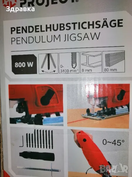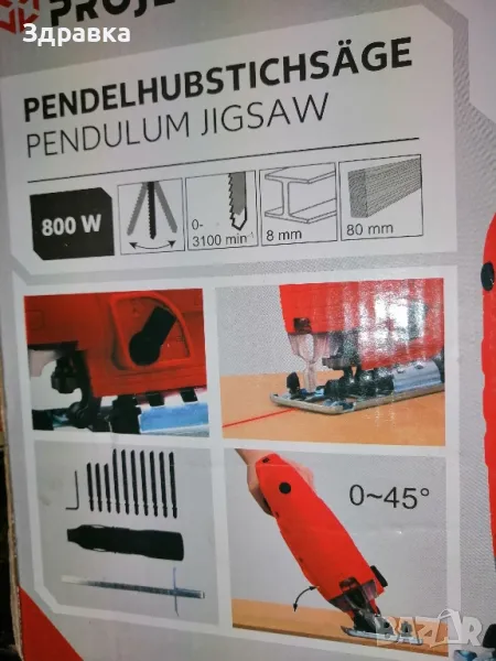 Ново в кутия. Много мощно НЕМСКО Зеге. Мощност 800 вата Лазарен водач за прецизно рязане, без грешки. Опция за рязане под 45 градуса. Телефон за връзка 0898528754.