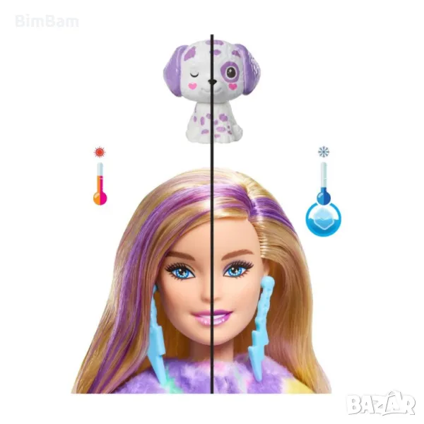 Леденостудената вода добавя допълнителна нотка магия, променяйки цветовете на лицето на куклата и мини животинчето; горещата вода връща оригиналните цветове за многократно забавление! Децата ще обичат да откриват и събират всички очарователни изненади в тази серия Barbie Cutie Reveal Color Dream.
