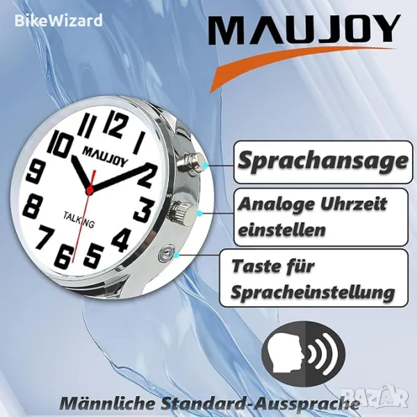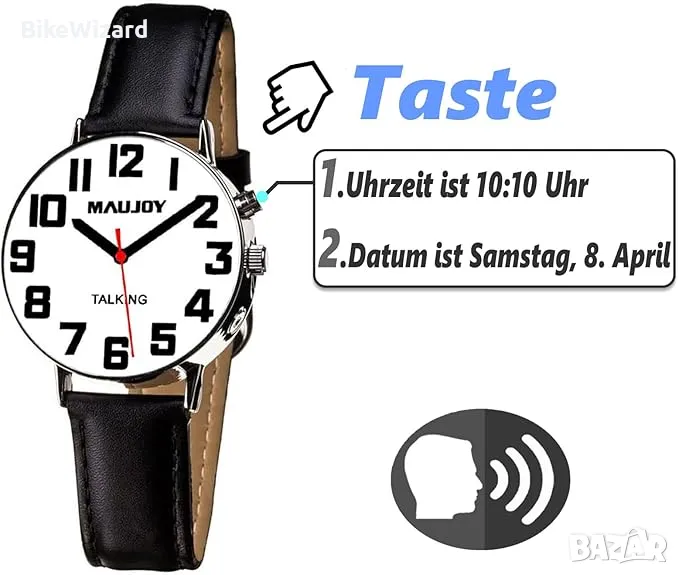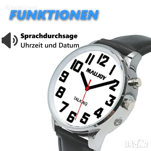 Обявяване на час и дата: чуйте ясно часа, датата или часа на алармата с немски глас.Настройте будилник, който да ви уведомява за прием на лекарства, събуждане или важни срещи. MAUJOY много ясен немски дамски говорещ часовник с функция аларма. Говорещи дамски часовници, съобщаващи часа и датата с ден от седмицата. Лесен за използване: часовникът е изключително лесен за използване. Само с едно натискане на бутон всички настройки могат да бъдат регулирани. Това позволява на потребителите да настройват часовника индивидуално според нуждите си и да се наслаждават на максимален комфорт.