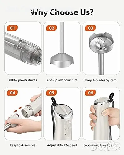 Мощност от 800W за бързо и безпроблемно смесване на съставки.