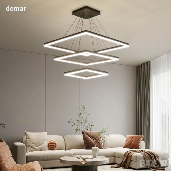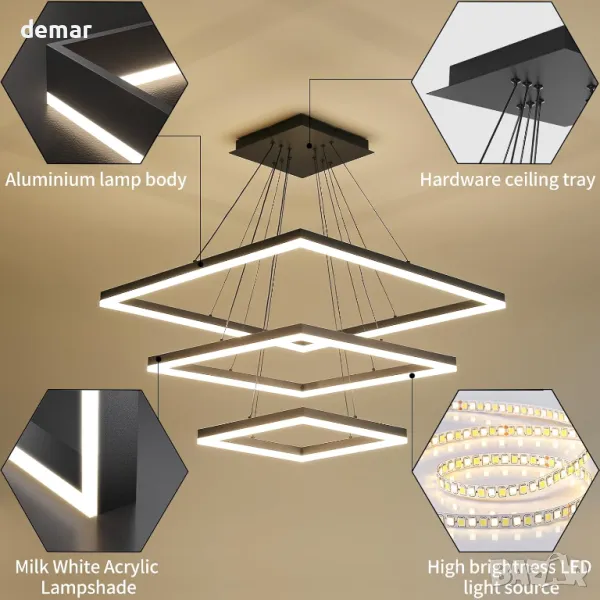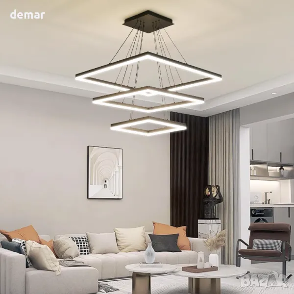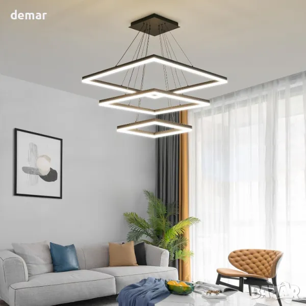 Модерен LED полилей, димируем, 3-слоен квадрат, регулиране на височина