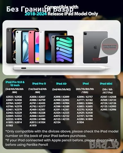 Моделна съвместимост: Работи с iPads от 2018 до 2024 г. – Air, Pro, Mini и стандартни версии.