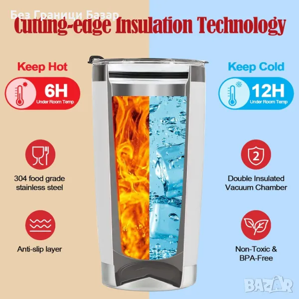 Двойна изолация – Запазва напитките горещи или студени, идеална за кафе, чай, коктейли и други.