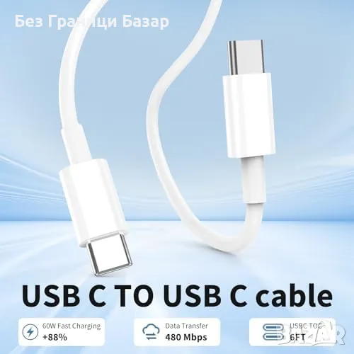 USB-C към USB-C кабел: Поддържа бързо зареждане до 50% за 30 минути и трансфер на данни със скорост 480 Mbps.