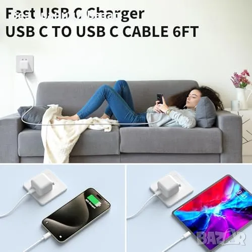 Ново 20W USB-C зарядно + кабел за iPhone 15/16 и iPad Pro - 3 броя