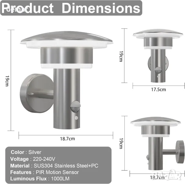 Подобрете външните си пространства с тези сензорни стенни лампи, включващи 4 режима на осветяване за персонализирано осветление: слаба светлина, средно ниво на светлина, сензор за движение и комбиниран режим, лесно превключваем за секунди. Създадени да издържат с издръжлив корпус от неръждаема стомана SUS304 и водоустойчив рейтинг IP44, те издържат на ръжда, силен дъжд, сняг и силен вятър, което ги прави идеални за веранди, градини и гаражи. Здравият PC абажур защитава интелигентна, дълготрайна LED платка за надеждно осветление, въпреки че платката не подлежи на смяна. С опростена инсталация и многостранни приложения, тези светлини внасят стил и функционалност във всяка външна зона, включително коридори, стълбища и входни врати.