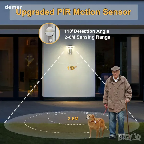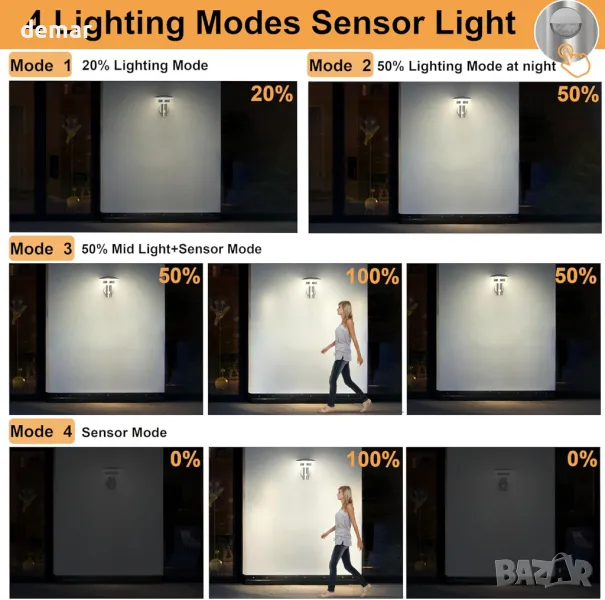 NBHANYUAN 2 броя Външна LED стенна лампа, сензор за движение, 4 режима