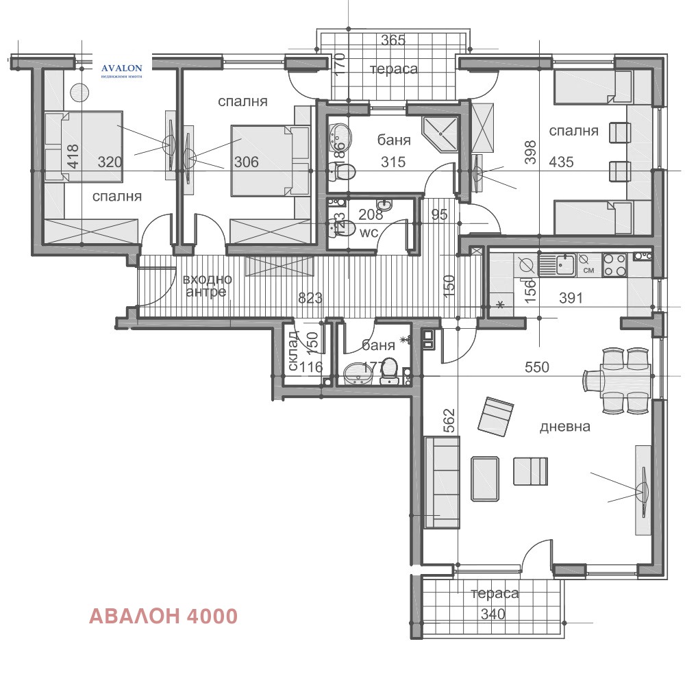 Хубав и наистина просторен апартамент с: 3 спални, 3 санитарни възела, склад, 2 тераси, 3 изложения, с голяма и светла дневна зона (хол) със светъл кухненски бокс.