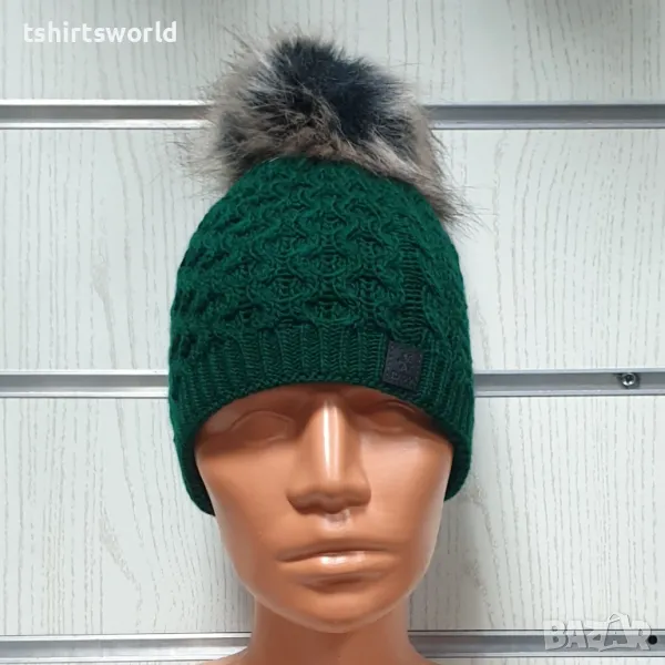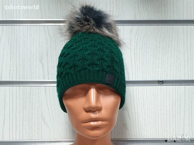Нова дамска плетена шапка с помпон/пух в зелен цвят → Обява 48208906