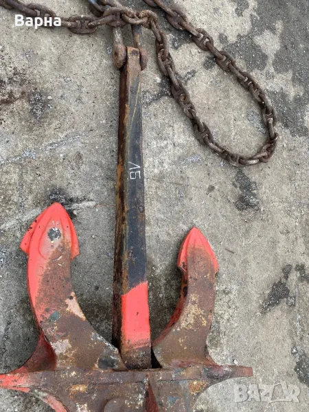 Продавам морски корабни котви,налични 2 броя,в добро състояние,цената е за 1 брой.Котвата тежи около 300кг.Дава се с около 3-4 метра верига.