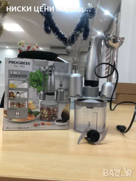 Ръчният блендер Progress 3в1 с мощност 350W е многофункционален уред, който комбинира няколко функции за приготвяне на храна. Това го прави идеален избор за ежедневна употреба в кухнята.