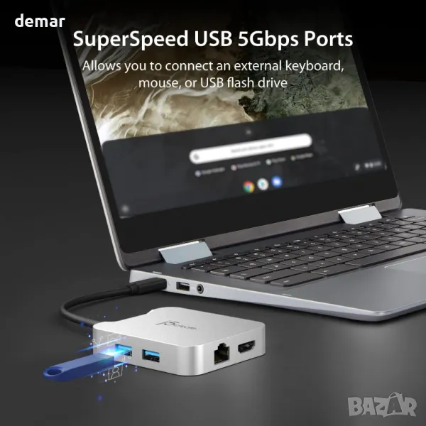 j5create USB C хъб за MacBook, ChromeBook, XPS, Surface Pro (JCD391)