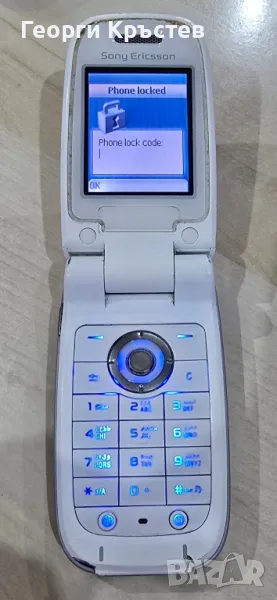 Sony Ericsson Z520i - телефона се включва, тестван с А1, нямам друга за проба, но има код на телефона, който не знам, зарежда си батерията, активен и стегнат капак, без батерия, панел, заден капак и зарядно.