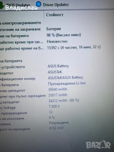 Батерията е на 18% износване и държи 3 часа - 40лв.
