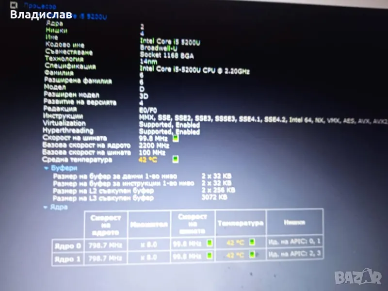 Дъно с процесор Intel Core i5 5200U с видеокарти Intel HD Graphics 5500 и Nvidia GeForce 940M - 100лв.
