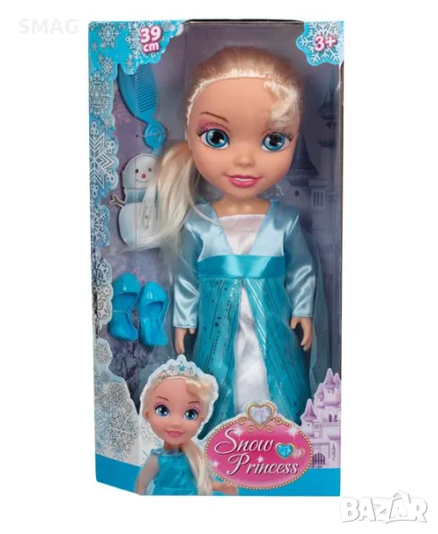 Кукла снежна принцеса с тюркоазена рокля, обувки и гребен за коса.